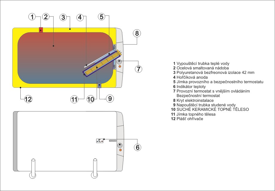 Materiál bojleru Ocelový vnitřní výměník - ochranný SMALT systém Smaltované | |